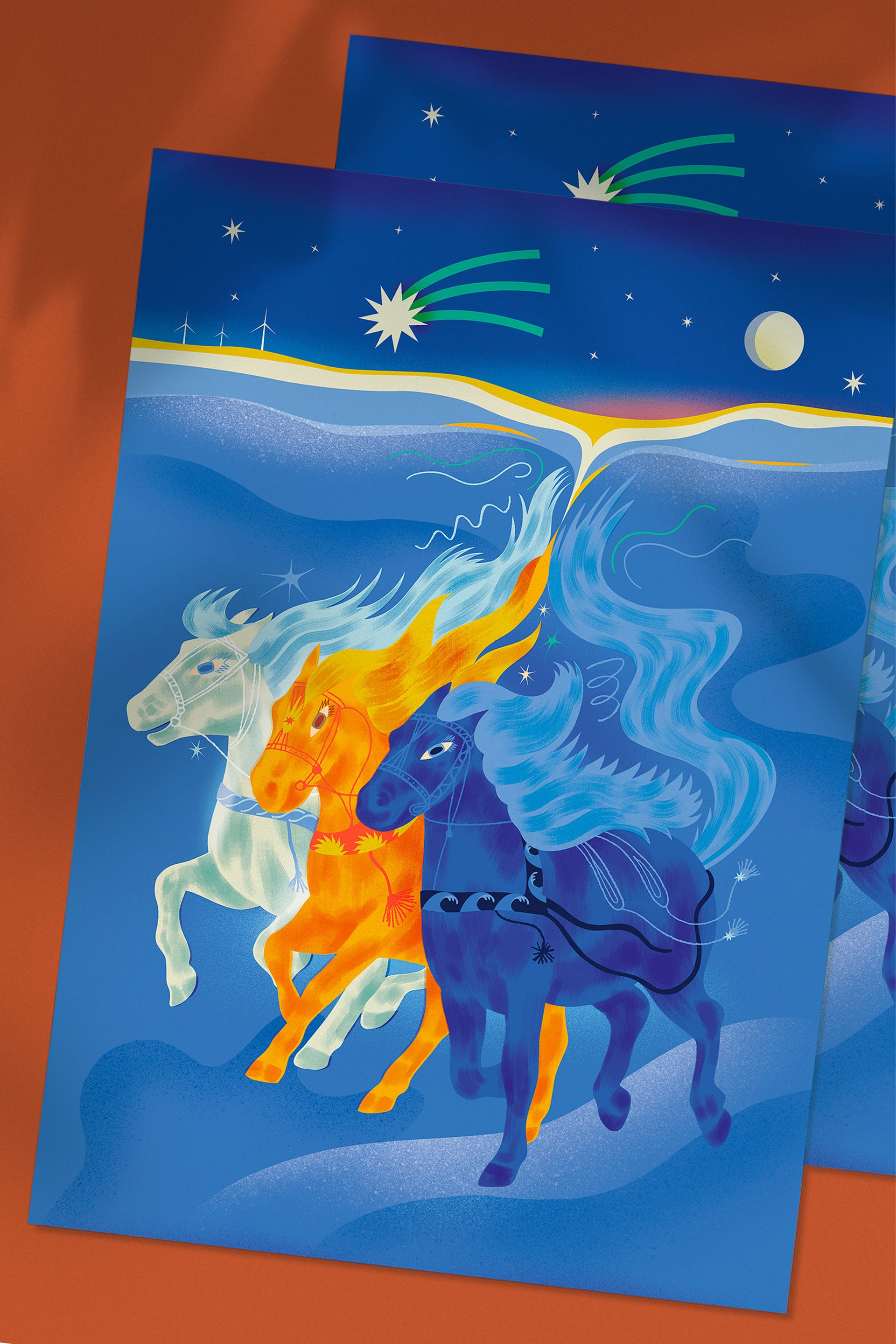 Christmas postcards for Polenergia, Poland's largest privately owned energy group, focus on renewable energy generation, distribution, and sales.